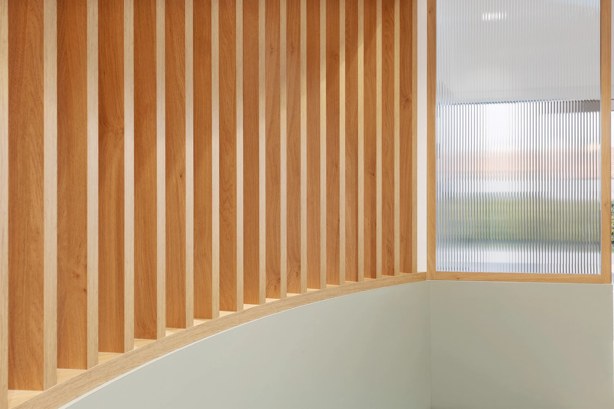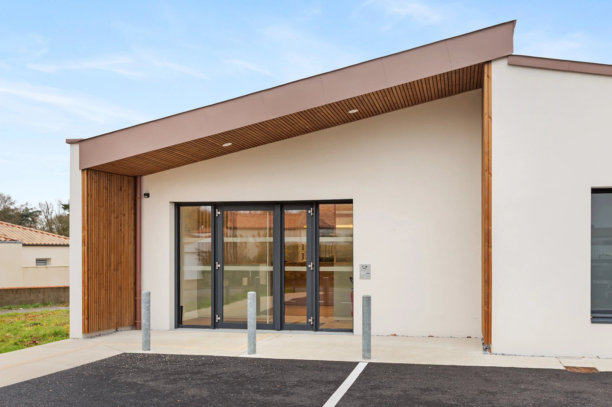 Sur le plan architectural, le projet s’inscrit dans le paysage local par une volumétrie sobre et l’utilisation de teintes chaudes, notamment un zinc de couleur terre, associé au bois, apportant une atmosphère chaleureuse et contemporaine. Ce projet illustre une approche attentive aux usages, à la lumière naturelle et à l’intégration paysagère, au service d’une architecture de soin fonctionnelle et humaine.