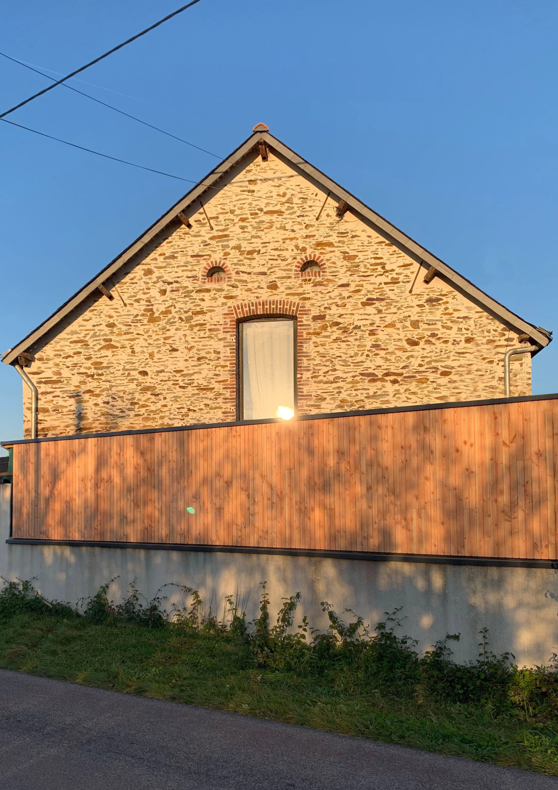 L’implantation du bâtiment s’inscrit dans les formes urbaines et paysagères environnantes en proposant une lecture simple des volumes. L’architecture repose sur un bâtiment rectangulaire aux lignes sobres, couvert d’une toiture principale à deux pentes, faisant écho aux typologies agricoles locales, tout en affirmant une écriture contemporaine.
